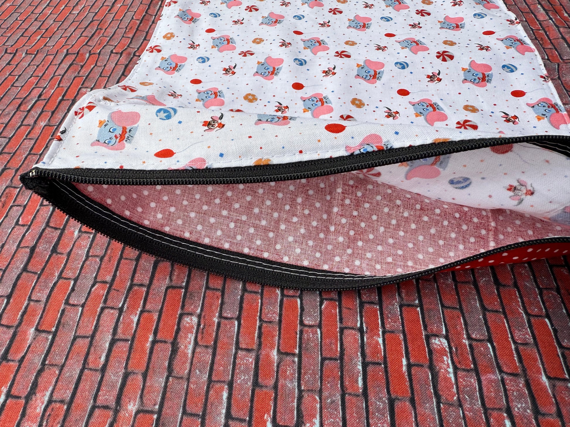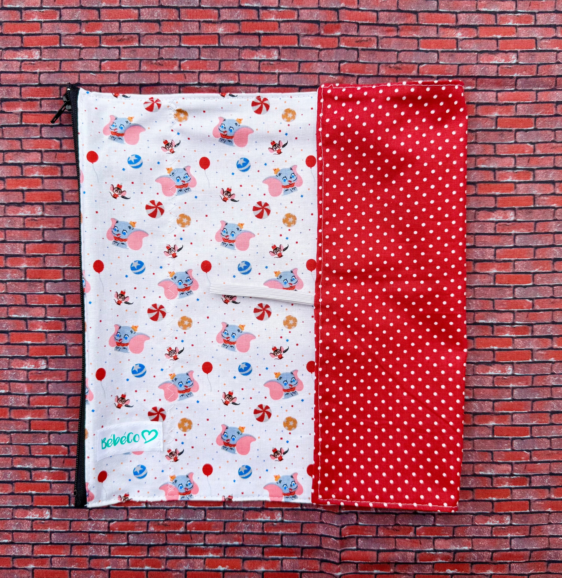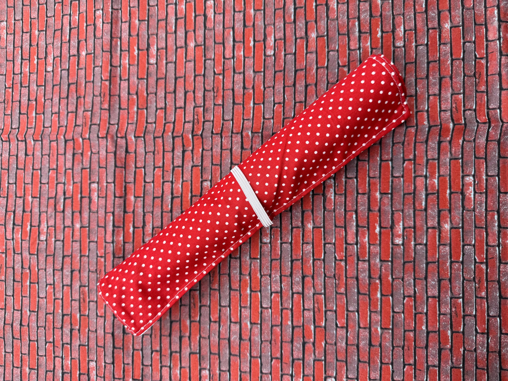 Petit napperon en coton avec pochette pour les ustensiles. Très facile à ranger on le roule et on attache avec l'élastique. Le napperon est également réversible, un motif plus intense au devant et un motif plus neutre à l'endos.