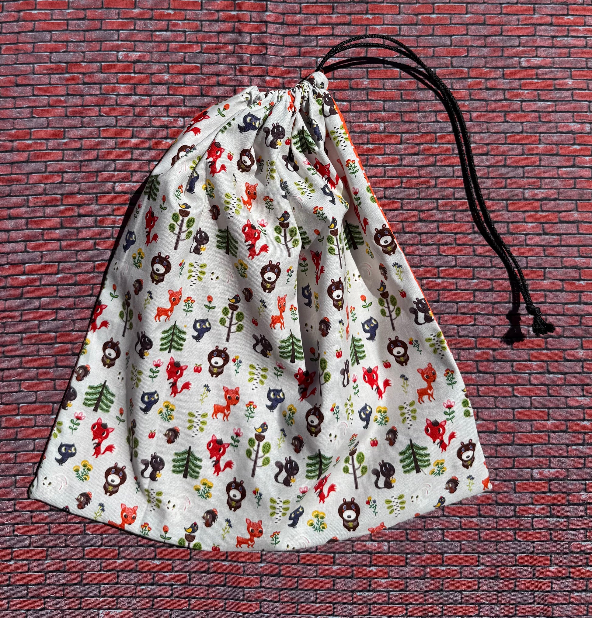Petit sac en coton ultra pratique pour le linge d'éduc, la petite doudou de garderie, les vêtements de rechange, les souliers ou bien d'autres choses. Se referme avec un cordon solide et pratique pour le transport.
